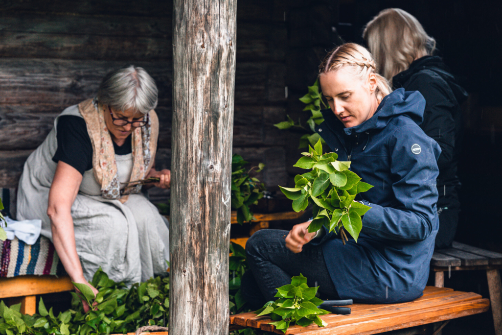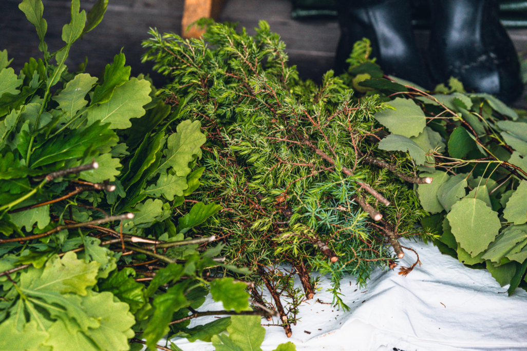 Eda recommends gathering in the afternoon when the branches are dry and full of energy. “Look at the forest, meadow, and garden with squinted eyes,” she says. “Ask the plant spirits if they can help you in the sauna today. They will answer by swaying or nodding.”