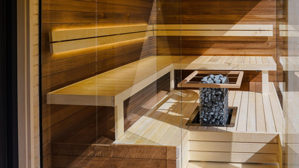 - As a design option, CLIFF electric sauna heater can be embedded into the sauna bench.