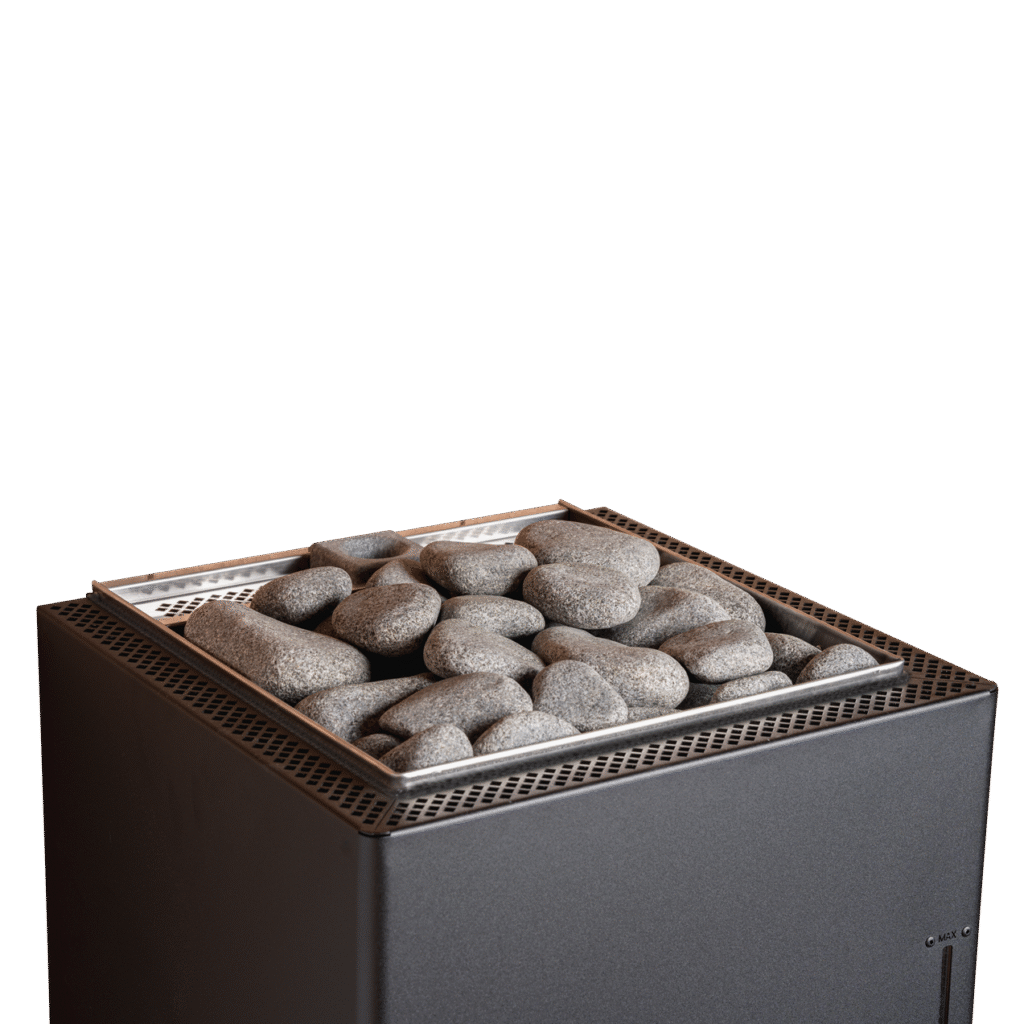 Holding up to 20 kg of stones, this wall-mounted heater delivers rich steam and a naturally smooth sauna experience.