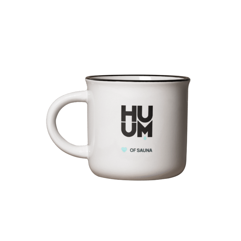 Enjoy your coffee or tea in the HUUM Retro Mug. This stylish ceramic mug features a classic design with high-quality silk screen printing of the HUUM logo, making it a perfect companion for any sauna lover.