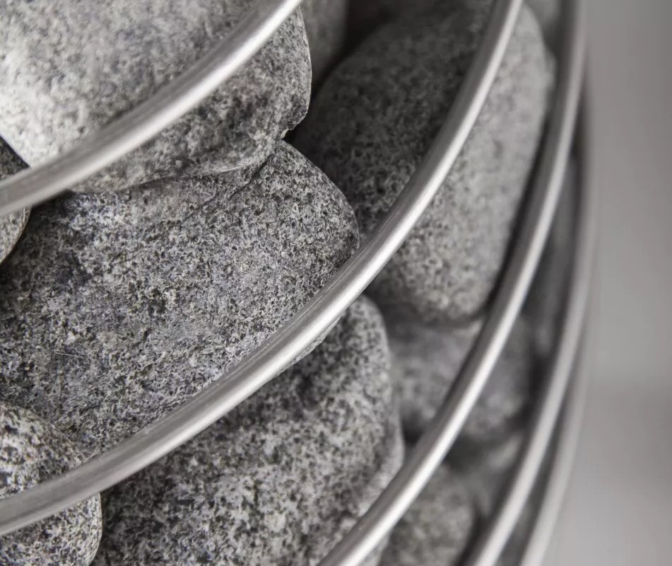 - STEEL Mini sauna heater requires approximately 60 kg of sauna stones with a diameter of 3–5 cm.